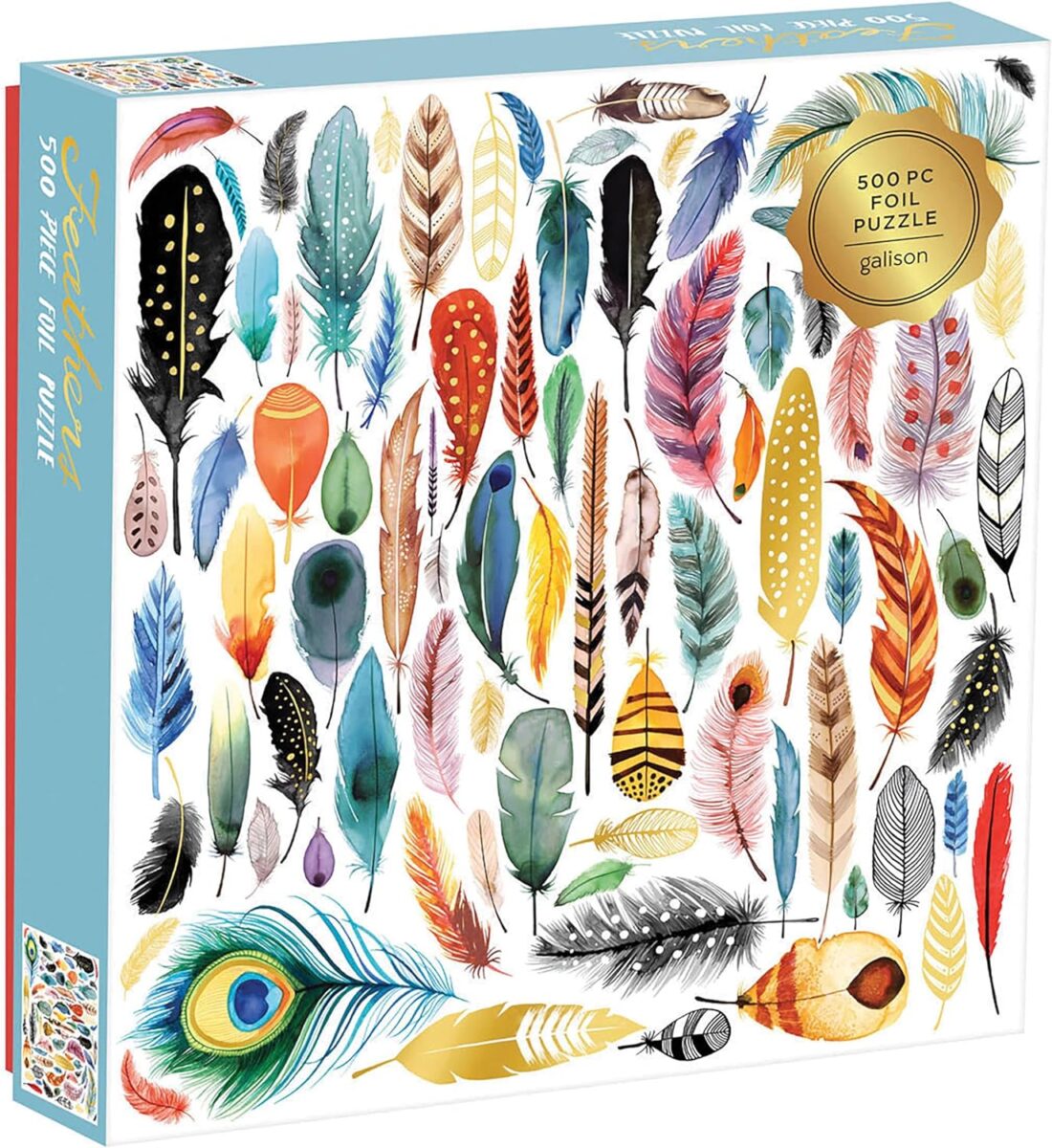 Stunning Details: This Flawless Fit Jigsaw Puzzle Features A Vibrant Watercolor Illustration Of Feathers From Artist Margaret Berg. Gold Foil Accents Create A Stunning Pattern Of Plumage That Comes Together Piece By Piece.